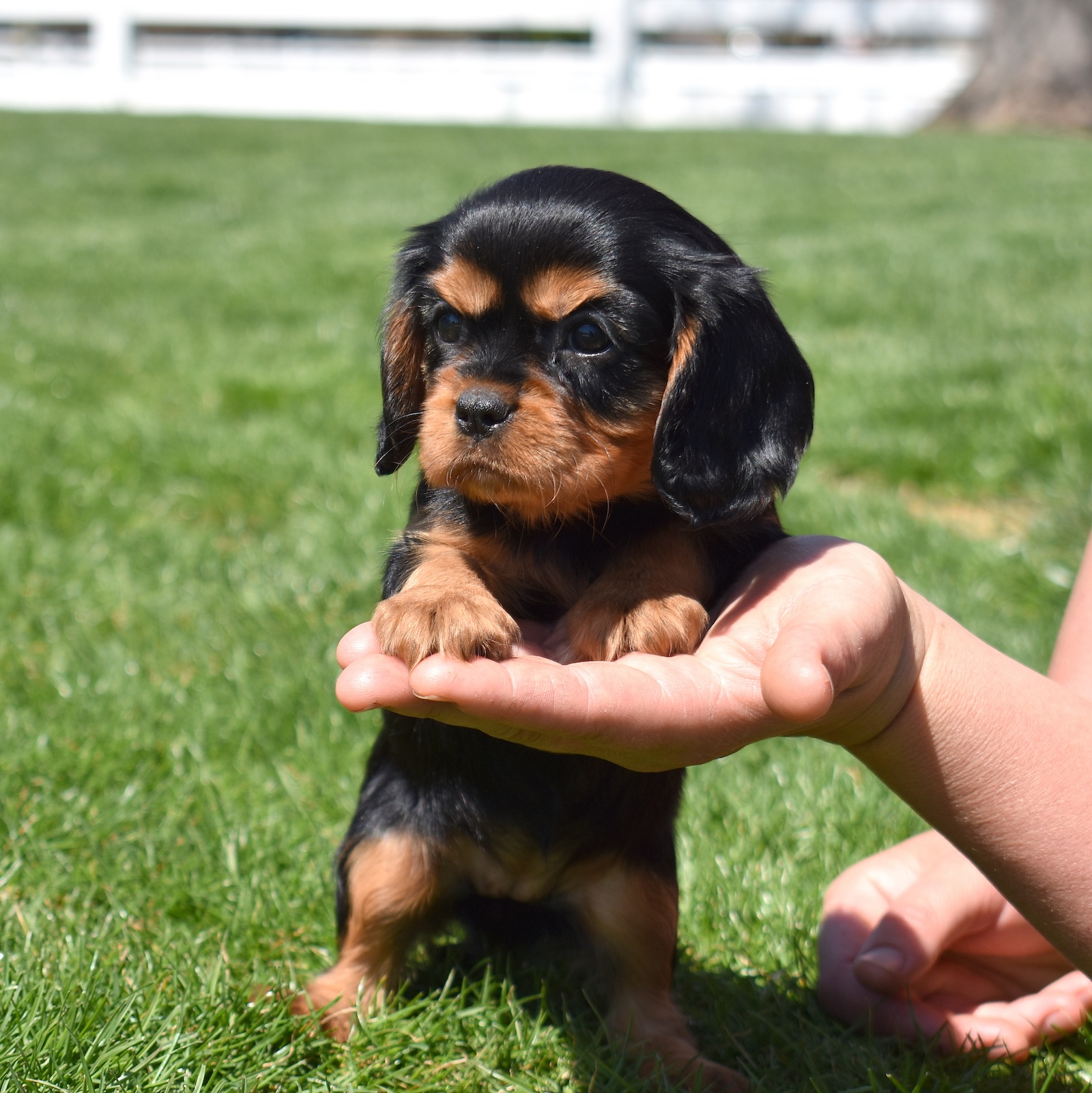 Izzy is sunshine in puppy form — a tiny ball of warmth, wonder, and unconditional love that brightens every space she enters. Her striking black and tan coat is elegantly classic, with lustrous black flowing over her silky body and rich tan accents kissing her cheeks, paws, and brows in the most endearing way. But what truly makes Izzy extraordinary is the light behind her eyes — curious, joyful, and completely devoted to the people she loves. She’s the kind of girl who bounces into a room and makes everyone feel seen. As a Cavalier King Charles Spaniel black and tan, Izzy carries all the hallmark grace and gentle sweetness of the breed, wrapped up in a personality that is entirely, wonderfully her own. She adores gentle play, soft cuddles, and following her favorite humans from room to room just to be near them. Life with Izzy means waking up to a wagging tail, laughing at her silly antics, and feeling a love so genuine it quietly transforms your everyday into something beautiful.