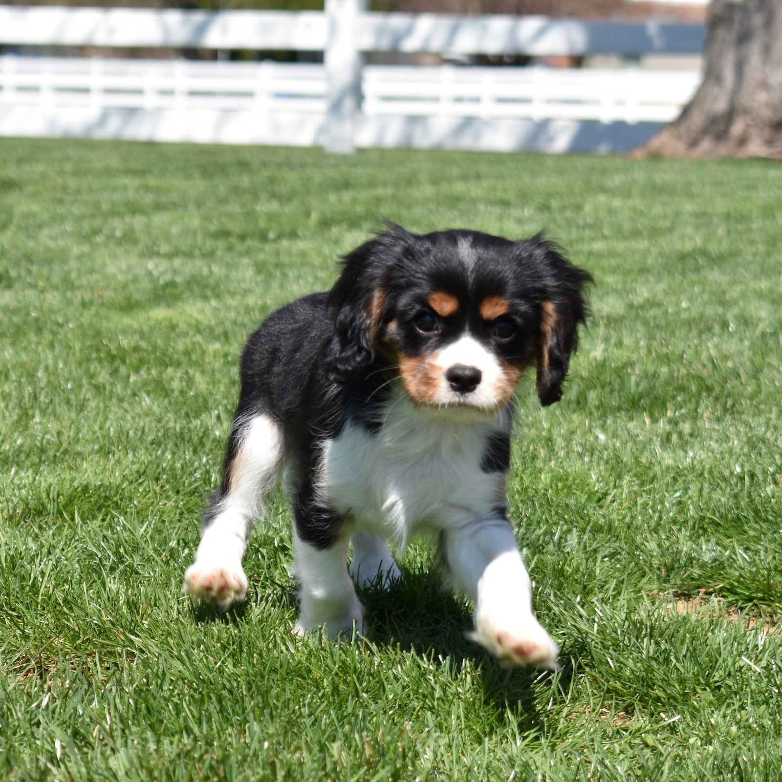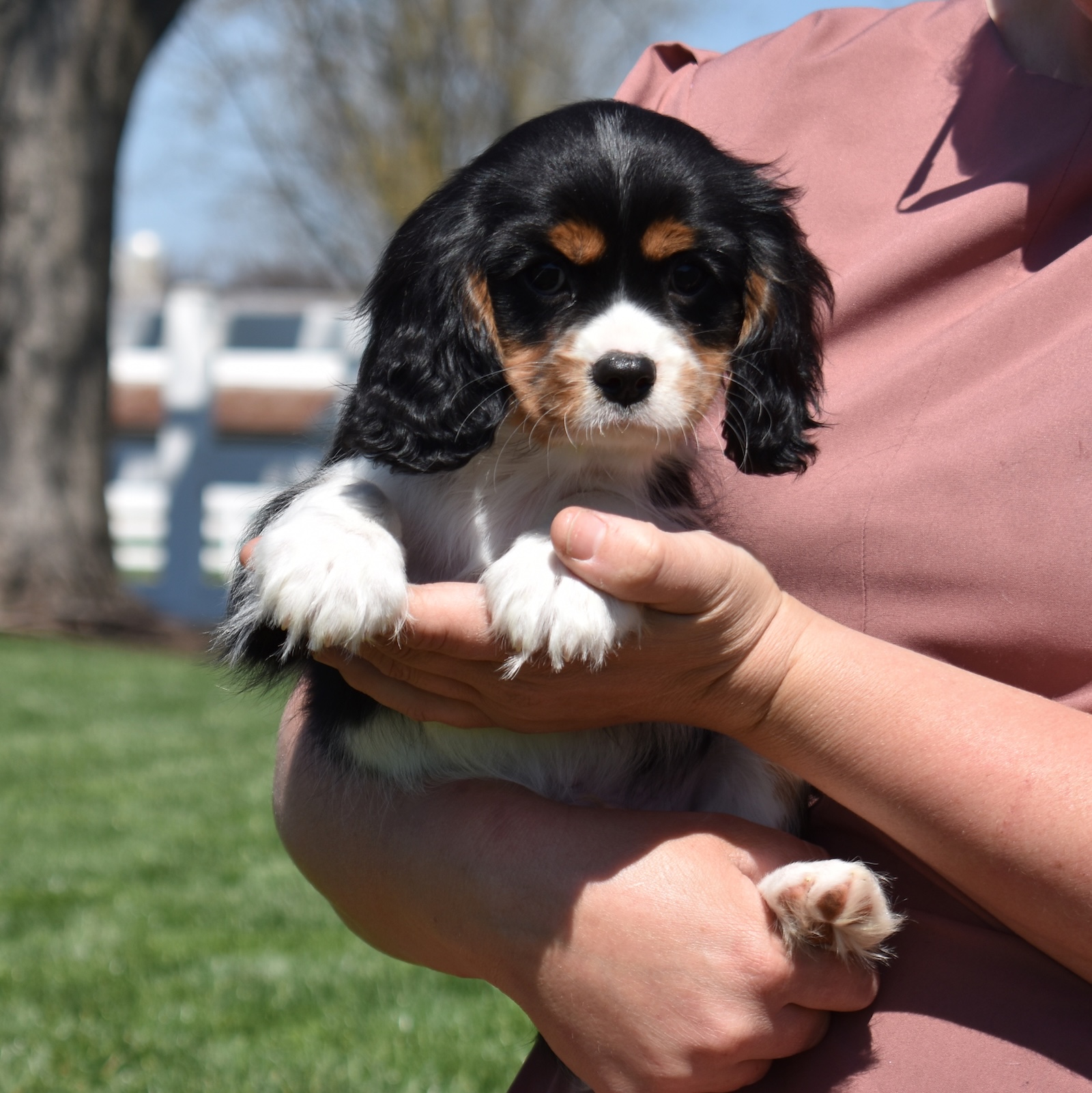 From the moment Timber wakes up each morning, he’s ready to greet the day with enthusiasm. He enjoys playful adventures, whether that means discovering new corners of the yard, chasing a favorite toy, or happily trotting beside you as you go about your day. This delightful tri color cavalier puppy has a natural sense of curiosity that makes every moment feel exciting.